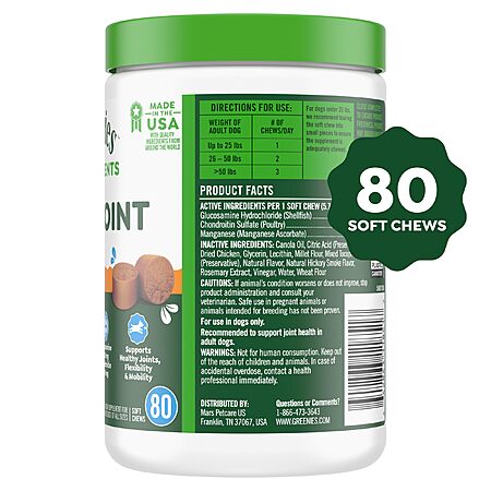 80-Count Greenies Hip and Joint Chicken Flavor Supplements for Dogs $15.71 w/ S&S + Free Shipping w/ Prime or on $35+