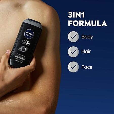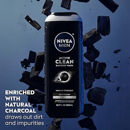 [S&S, AC] $8.28* | 3-Pack 16.9-Oz Nivea Men DEEP Active Clean Charcoal Body Wash at Amazon ($2.76 each)
