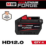 4-Pack Milwaukee M18 18V Lithium-Ion REDLITHIUM FORGE HD 12.0 Ah Batteries