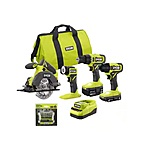 RYOBI ONE+ 18V Cordless 4-Tool Combo Kit with 1.5 Ah Battery, 4.0 Ah Battery, Charger, and Diamond Grit Driving Set (12-Piece) $164.97