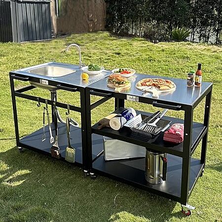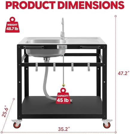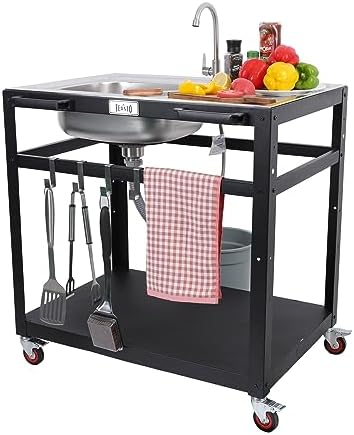 [YMMV, AC] $123.74* | 35” Feasto Outdoor Kitchen Stainless Steel Sink Station Cart at Amazon