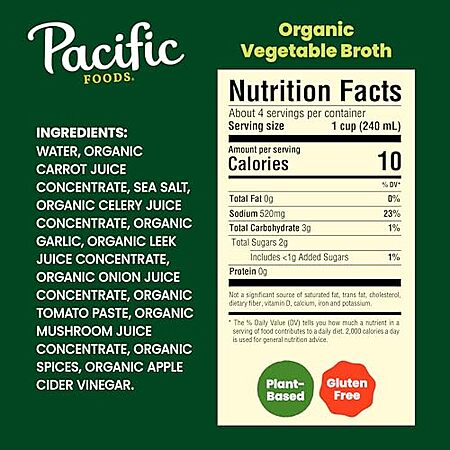 [S&S, AC] $20.21* | 10 × 32-Oz Pacific Foods Organic Vegetable Broth ($2.02 each) at Amazon