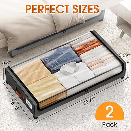 $28.19* | 2-pk Under Bed Storage w/ Wheels (Dark Grey) at Amazon