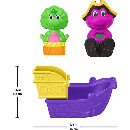 - Set sail for endless summer fun with Fisher-Price's imaginative pirate ship playset! Featuring playful water squirters of Barney in a pirate outfit and Baby Bop as a mermaid, along with a fun boat and strainer piece, this set creates a splash-tastic adventure that inspires creativity and joyful play during sunny days.Set sail for endless summer fun with Fisher-Price's imaginative pirate ship playset! Featuring playful water squirters of Barney in a pirate outfit and Baby Bop as a mermaid, along with a fun boat and strainer piece, this set creates a splash-tastic adventure that inspires creativity and joyful play during sunny days.FEATURES Inspired by the Barney's World series, this set features 4 water toys for toddlers to squeeze, scoop, and strain for fun water play. Includes Barney and Baby Bop water squirters, a pirate ship, and a strainer. Multiple ways to play! Send water flying with Barney and Baby Bop, scoop and pour with the boat's hull, and strain with the boat's stern. Sparks imagination! Barney is dressed up as a pirate, and Baby Bop is dressed up as a mermaid for storytelling fun. Helps foster fine motor skills and encourages imaginative play for toddlers and preschool kids ages 2 years and older.WHAT'S INCLUDED Includes 4 pirate play piecesDETAILS Age: 2 years & up Weight: 0.68 lbs. 6.98" x 6.98" x 3.11" Plastic Spot clean Imported Model no. JDW88 Size: One Size. Gender: unisex.