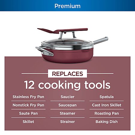 $80*:Ninja Foodi NeverStick PossiblePan 4-Qt Cookware Set, Nonstick, Oven Safe, with Steamer Basket & Glass Lid