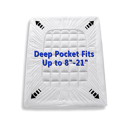 Queen Size Quilted Deep Pocket Down Alternative Mattress Pad Cover (Fits Mattresses 8" - 21" ) $16.99 + Free Shipping w/ Prime