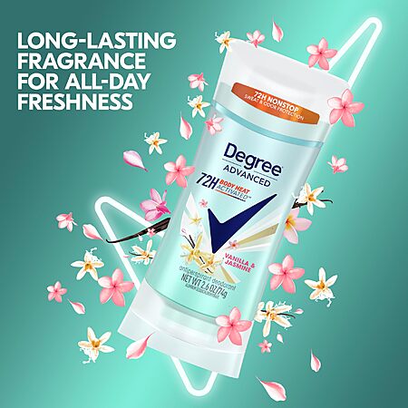 - NONSTOP FRESHNESS: Degree Vanilla & Jasmine Advanced Protection Antiperspirant Deodorant keeps you feeling shower clean with 72-hour sweat and odor protection