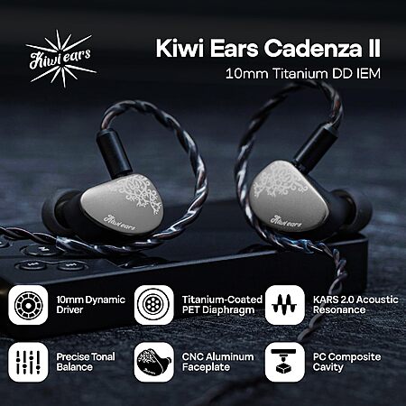 Linsoul Kiwi Ears Cadenza II 10mm Titanium Driver in Ear Monitor, HiFi Wired IEM Earphones with KARS 2.0, CNC Aluminum Faceplate for Musicians Audiophiles Gaming (Grey)