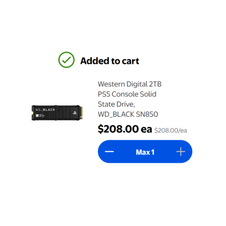 YMMV Location Based: 2TB WD_Black PS5 SN850P NVME drive with heatsink + Free Store Pick-up or Delivery (with Walmart+) $208