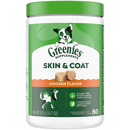 80-Count Greenies Dog Skin and Coat Supplements (Chicken) $11.37 w/ S&S + Free Shipping w/ Prime or on $35+