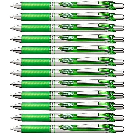 [S&S] $14.34 | 12-Pack Pentel EnerGel RTX Retractable Liquid Gel Pen (0.7mm, Metal Tip, Medium Line, Lime Green) at Amazon