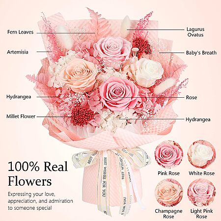 $24.99: Preserved Flowers Bouquet 4 Roses - Pink Roses & Flowers for Delivery, Long-Lasting Real Roses Forever, Anniversary Birthday Valentine Gifts for Women Mom Grandma Her Wife
