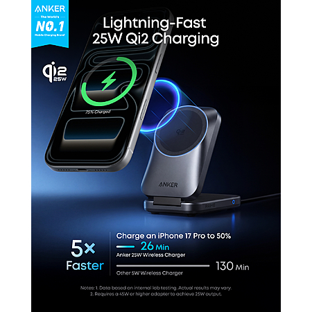 Anker Prime MagSage Qi2.2 25W 3-in-1 Wireless Charging Station $120 + FS