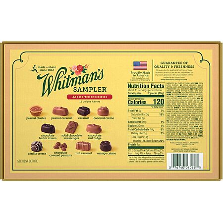 $6.99: WHITMAN'S SAMPLER Assorted Milk & Dark Chocolate Candy Gift Box, 10 oz.