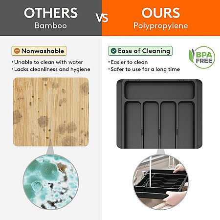 Prime Members: Lifewit Expandable Silverware / Utensil Kitchen Drawer Organizer (Black, Medium) $2.99 + Free Shipping