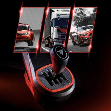 TH8S Shifter Add-On features an "H"-pattern shift plate with 7 gears plus reverse gear, with direct gear shifting, allowing it to adapt to all types of games and vehicles with manual shifting (rally, trucks, GT, NASCAR).