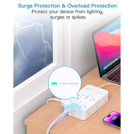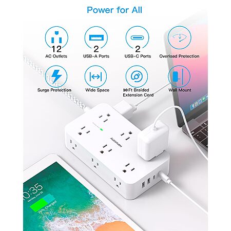10' HANYCONY Extension Cord Surge Protector w/ 12 Outlets & 4 USB Ports (2USB C) $9.99 + Free Shipping w/ Prime or on $35+