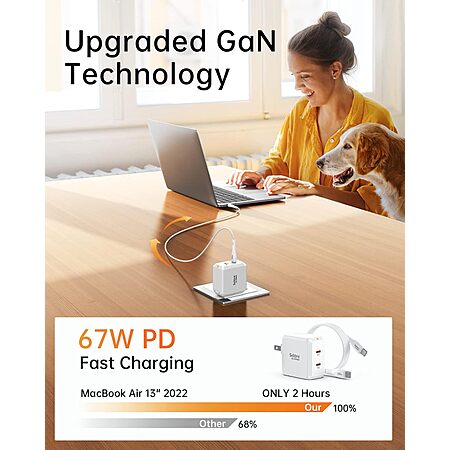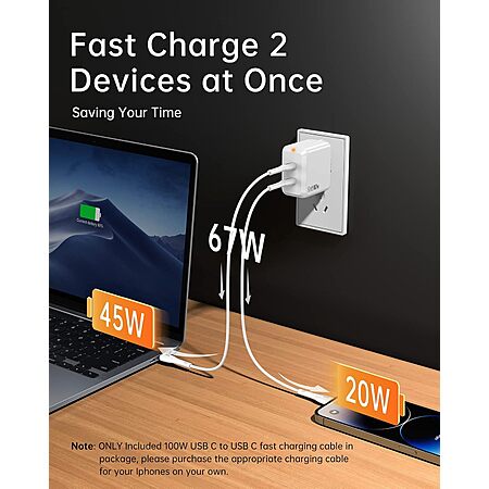 Selore 67W GaN 2-Ports USB-C Foldable Wall Charger w/ 4' 100W USB-C Cable $10.49 + Free Shipping w/ Prime or on $35+