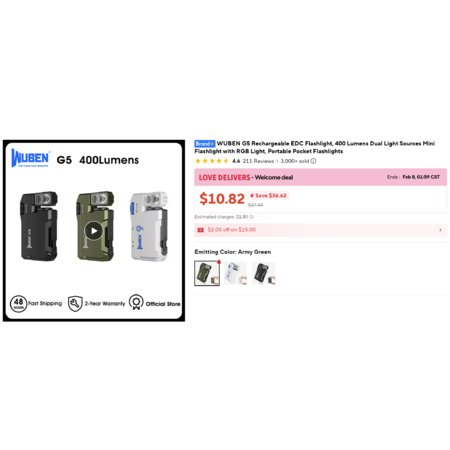 Aliexpress - WUBEN G5 Rechargeable 400 Lumens EDC Flashlight $10.82 + tax + free s/h