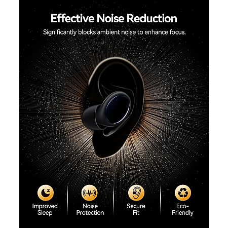 • 45dB Superior Noise Reduction: Ear plugs use advanced acoustic filters to block disruptive noise (as snoring or talk) for deep sleep, while maintaining clear sound during concerts or holiday events by reducing noise without distortion. Ear plugs for sleeping feature a multi-layer sound insulation design,combining high-density and sound insulation technology to provide 45dB hearing protection, ensuring safety without affecting sound quality. Ear plugs are perfect for side sleepers & concert fans