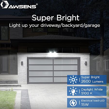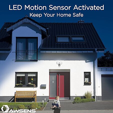 $21*:AWSENS 40W Outdoor Motion Sensor Security Light, 4000LM, 5000K, 2-Head Flood Light
