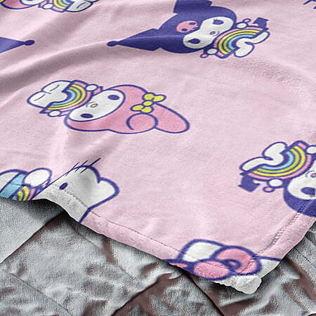 | Product Description: | Soft, cheerful, and full of friendship, the Officially Licensed Hello Kitty “Sharing Sweet” Ultra Fine Faux Fur Throw wraps you in warmth and kawaii charm. Featuring Hello Kitty, My Melody, and Kuromi holding colorful rainbows on a pastel pink background, this blanket adds a playful, heartwarming touch to any space. Crafted from ultra fine faux fur, it offers luxurious softness, plush warmth, and a silky-smooth feel—perfect for cozy nights, stylish room décor, or snuggling up with your favorite Sanrio friends. A delightful gift for Hello Kitty fans and comfort lovers alike, the “Sharing Sweet” blanket celebrates joy, friendship, and everyday magic. Whether you’re relaxing at home, watching movies, or giving your space a touch of cute comfort, it’s the ultimate blend of coziness and charm. Featuring Hello Kitty, My Melody, and Kuromi holding colorful rainbows on a pastel pink background, this blanket adds a playful, heartwarming touch to any space. Officially Licensed: Offical Sanrio designs emulate an essense of joy and charm. Giftable: This throw makes an adorable gift for Hello Kitty and Friends fans of all ages. Great for birthdays, holidays, themed décor updates, or just to show you care. Easy Machine Care: Simply toss in the wash and tumble dry for effortless cleaning with minimal maintenance. Soft to Touch: This throw offers a smooth and silky silk touch feel that is always cozy. Year Round Comfort: this blanket is perfect for movie nights, naps, or adding a layer of comfort to beds, couches, or travel setups. 500 GSM |