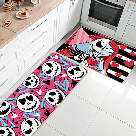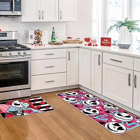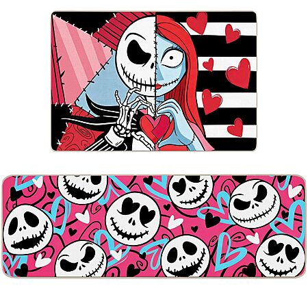 RUIZHUO 2Pcs Valentines Day Kitchen Mats Door Mat Set, The Nightmare Before Christmas Decorations Inspired 16x45 and 16x24 inch - $11.49