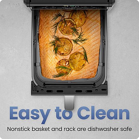 - EFFORTLESS CLEANUP: The nonstick air fryer basket makes serving and cleanup a breeze. Both the basket and rack are top-rack dishwasher safe to take all the stress out of doing the dishes.