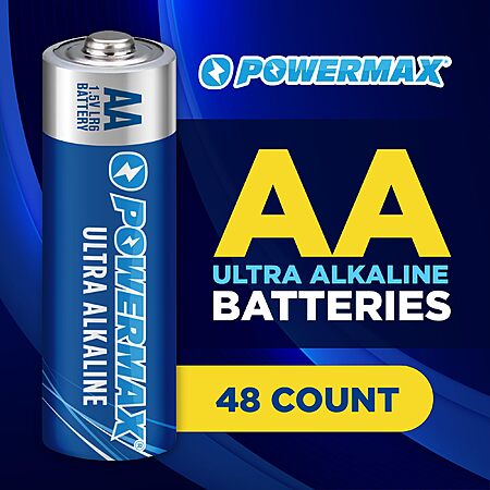 [AC,S&S]$10.17*:Powermax 48-Count AA Batteries, Ultra Long Lasting Alkaline Battery, 10-Year Shelf Life, Reclosable Packaging