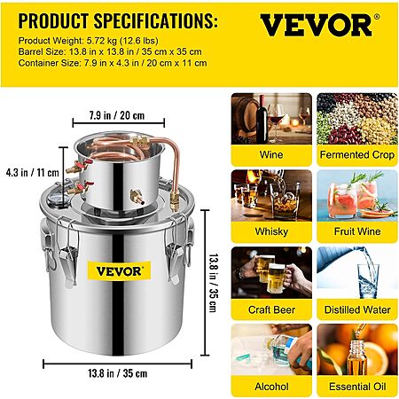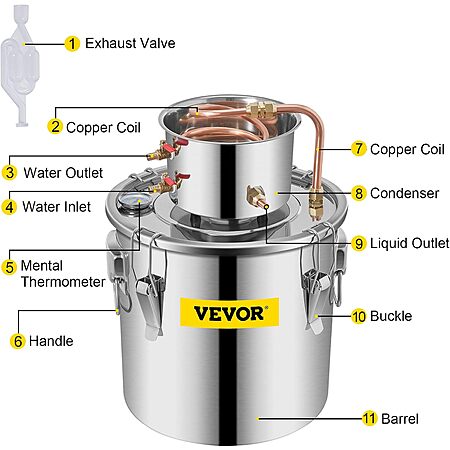 - VERSATILE HEATING METHODS: This home distilling kit is brilliant for both beginners and experts. It is perfect for distilling fruit wine, water, purifying water, distilling brandy. The thickened fermentor bottom is suitable for all kinds of heating methods, including gas stoves, ceramic stoves, electric coil stoves, etc.