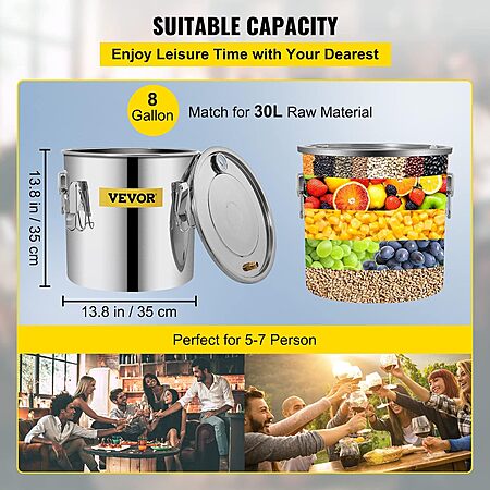 About this item- HEAVY-DUTY STAINLESS STEEL: The fermentor and condenser keg of the whiskey distilling kit is built with food-grade stainless steel material, ensuring long years of use. It features 8 US Gal real capacity, able to distill 30 Liters of raw material, by heating to boiling selectively, and then cooling to condense the vapor.