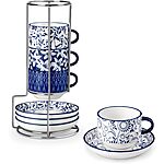 4-Count vancasso Porcelain Stackable Cups & Saucers Set w/ Metal Stand (Vintage Blue): 8-Oz $25.19, 4-Oz $22.79 + Free Shipping