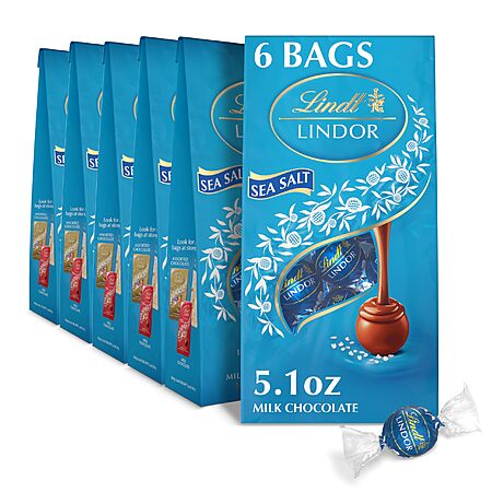 Lindt LINDOR Sea Salt Milk Chocolate Truffles, Milk Chocolate Candy with Smooth, Melting Truffle Center, Great for Gift Giving, 5.1 oz. Bag (6 Pack)~$21.55 With S&S @ Amazon