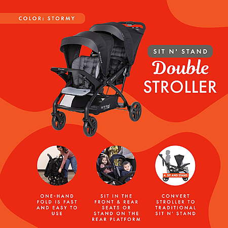 Baby Trend Sit N' Stand Double Stroller 2.0 DLX w/5 Point Safety Harness (Stormy) $187 + Free Shipping