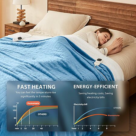 Homemate Heated Blanket Electric Throw - Various Sizes and Colors - 50" x 60" Throw from $14.49 + AND MORe