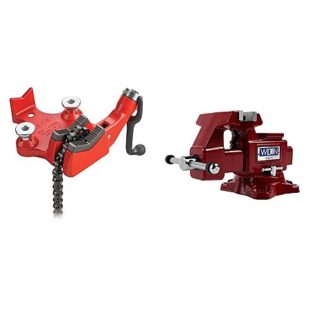 RIDGID 40195 Top Screw Bench Chain Vise and Wilton 4-1/2" Utility Bench Vise Pipe Clamping Tool Bundle $319.01