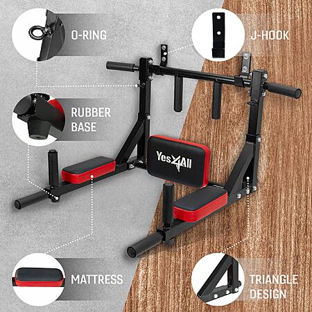 • Yes4All multifunctional wall mounted chin up/ pull up bar mix with dip bar may be used for pull ups and dip ups workouts to target different muscle groups.