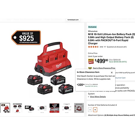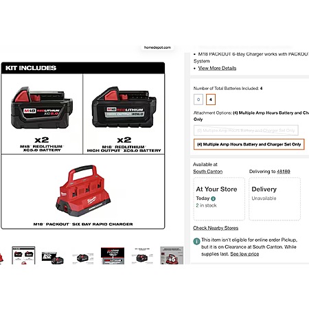 Includes: (1) M18 PACKOUT Six Bay Rapid Charger (48-59-1809), (2) M18 REDLITHIUM XC5.0 Battery (48-11-1852), (2) M18 REDLITHIUM HO6.0 Battery (48-11-1865)