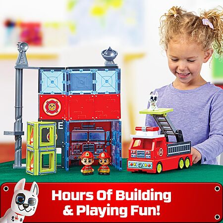 - Unique Action Figures: Each action figure of our magnetic tiles for girls and boys can unlock and play the Tile Town action tiles; the 3 firefighter and 1 dalmatian dog figures of this magnetic tiles toy are the foundation of the play