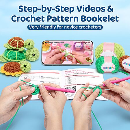 3-Pack Mewaii Turtles Crochet Craft Kit for Beginners w/ Step-by-Step Video Tutorial for