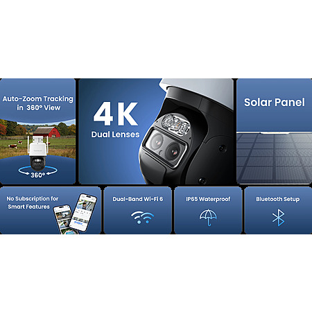 Reolink TrackMix - 4K Dual Lens PTZ WiFi Security Camera w/ Solar Panel + Battery - $173
