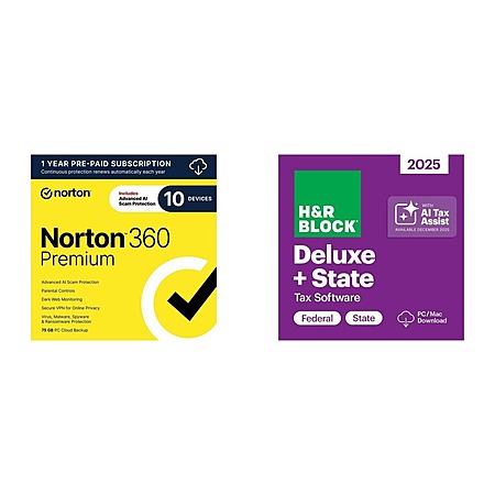 H&R Block Tax Software Deluxe + State 2025 PC/Mac + Norton 360 Premium 2026 for 10-Devices (Digital Download) $25