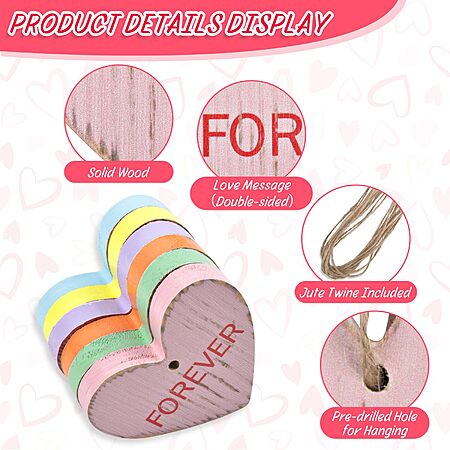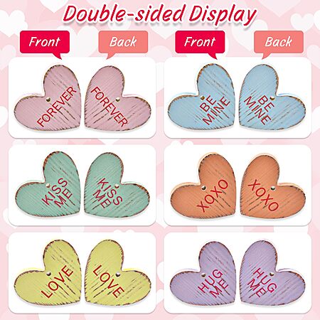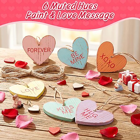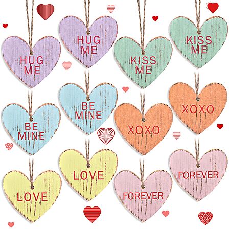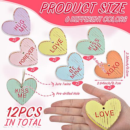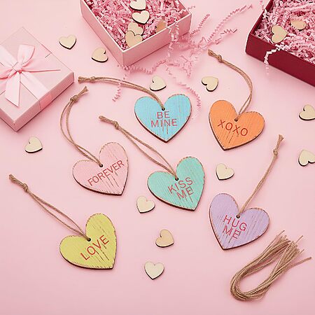 Valentine's Tree Decorations Conversation Heart - 12pcs Vintage Small Wood Heart Valentine's Ornaments with Love Messages - $5.49