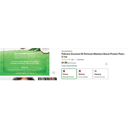 Palmers Coconut Oil Formula Moisture Boost Protein Pack - 2.1oz .49 w coupon