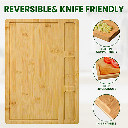 - Integrated Compartments: The extra-large board features three built-in compartments for convenient storage of pre-measured seasonings, ideal for efficient food preparation.