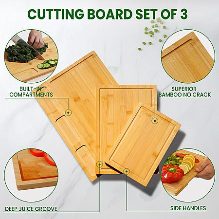 - Multipurpose Use: Beyond chopping, these carefully crafted and sanded bamboo boards can also serve as elegant wooden serving trays or grilling boards for displaying food.