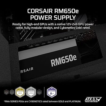 $79.99 | CORSAIR RM650e ATX 3.1 PCIe 5.1 Ready Fully Modular 650W Power Supply at Amazon