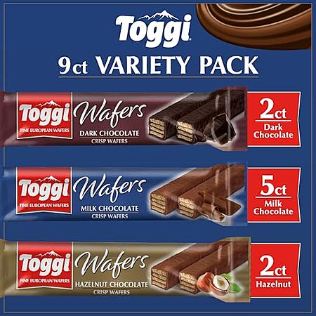 [YMMV, AC] $10.13 | 9-Pack 1.75-Oz TOGGI Fine European Chocolate Wafers at Amazon