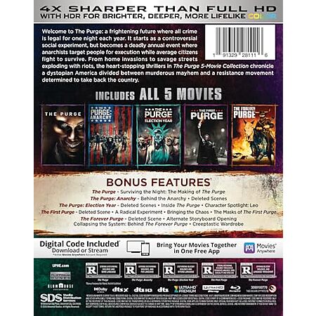 $34.99 | The Purge: 5-Movie Collection (4K Ultra HD + Blu-ray + Digital) at Amazon
