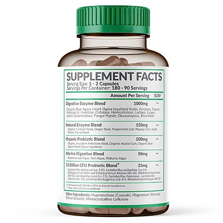 Model: Wholesome Wellness Digestive Enzymes 1000MG Plus Prebiotics & Probiotics Supplement, 180 Capsules, Organic Plant-Based Vegan Formula for Digestion & Lactose with Amylase & Bromelain,3-6 Months Supply